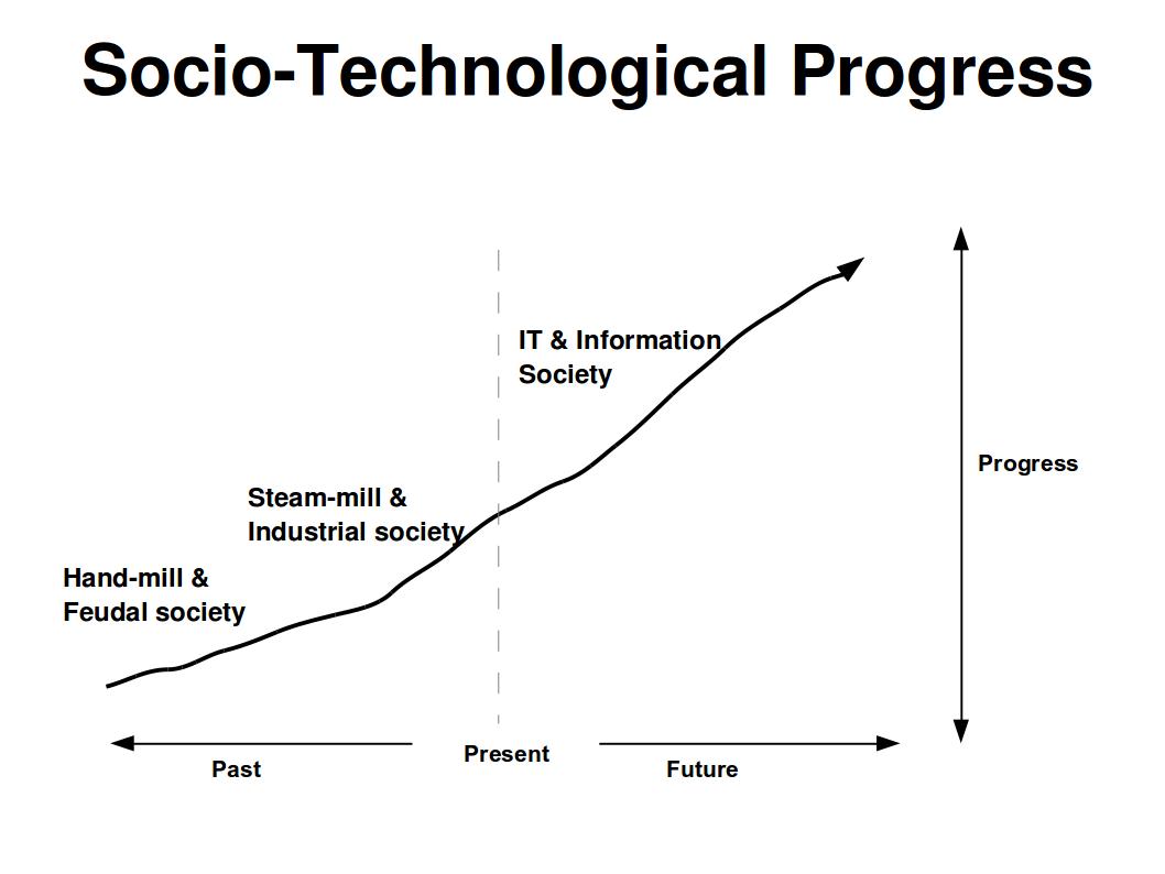 One criticism applicable to many development initiatives utilizing technology is an inherent causal linking of technology with social progress. As Sally Wyatt writes in the Handbook of STS: “One of the most misleading and dangerous aspects of technological determinism is its equation of technological change with progress”. Robert Heilbroner, an explicit technological determinist himself, used the famous Karl Marx dictum “The hand-mill gives you society with the feudal lord; the steam-mill, society with the industrial capitalist” to explain that there is a certain necessary causal connection between a given stage of social evolution and a given breed of technological evolution. The steam-mill follows the hand-mill not because of chance or social preferences; it does so because it belongs to the next stage of socio-technical evolution.